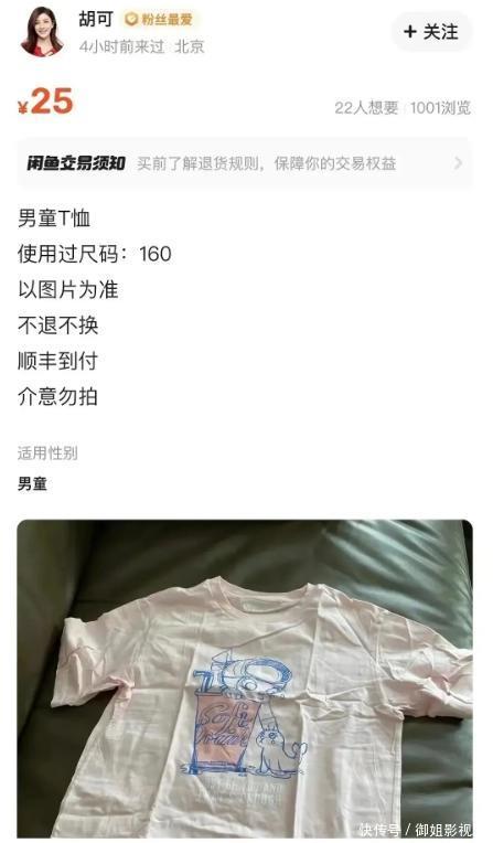 不外,许多明星看东西好卖之后,就开动把粉丝当冤大头,卖的旧物不仅未低廉,况兼品相很差,这就让粉丝有些失望了。近日,演员胡可卖的二手一稔就翻车了。
