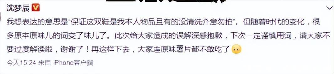 天然,更离谱的是沈梦晨,有一次在二手平台上卖我方穿过的二手一稔售价900元,但被网友发现新的才340元,难不行流程沈梦晨穿事后还升值了三倍?另外皮一些一稔的先容中居然用到了“沈梦晨原味一稔”来博眼球,激发网友吐槽。随后沈梦晨亦然发文说念歉。